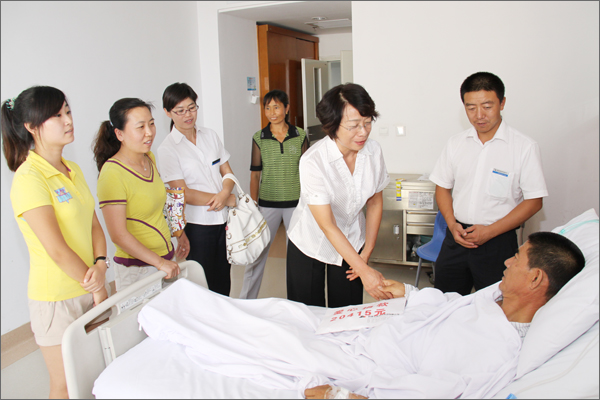 2012年7月27日下午,新疆華春投資集團工會主席高青與集團下屬的新疆華景物業(yè)服務有限公司、集團人力資源部、行政辦及編輯部等部門的管理人員一行6人,帶著華春全員的真摯情意及慰問品,前往新疆醫(yī)學院看望慰問華景物業(yè)公司員工張瑞患病住院的父親。集團工會主席首先向張瑞的父親轉(zhuǎn)達了李成功總裁對他的關(guān)心和誠摯問候,送上了華春全員給他捐助的2萬多元的愛心捐款。