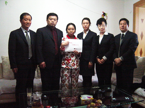 張趙瑛是華春員工張趙燕先生的妹妹,不幸患了鼻腔癌,因醫(yī)病而花費巨大并欠了外債。當華春全員得知她正在承受著疾病與經(jīng)濟負擔的雙重壓力時,“全國關(guān)愛員工優(yōu)秀民營企業(yè)家”華春投資集團董事局主席兼總裁李成功先生立即資助一萬元。華春員工也紛紛捐款,或多或少,皆是一片心意。鄧副總向張趙瑛轉(zhuǎn)達了李總裁對她的問候,希望她樹立信心,以積極的心態(tài)戰(zhàn)勝疾病,華春視每一位員工和員工親屬為家人,關(guān)愛員工、幫助員工是華春應(yīng)盡的社會責(zé)任。