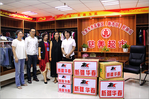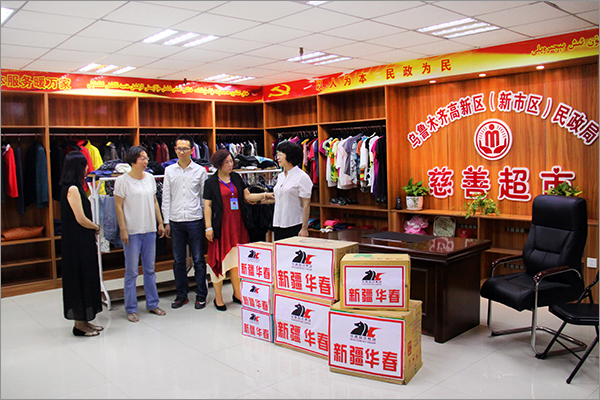 在新疆日漸臨近的寒冷氣候到來(lái)之前,新疆華春投資集團(tuán)副總裁兼工會(huì)主席高青攜企業(yè)文化中心管理人員一行,代表華春團(tuán)隊(duì)于8月18日將裝滿7箱的羽絨服、毛衣、風(fēng)衣等衣物,送到烏魯木齊高新區(qū)(新市區(qū))慈善超市,由其送與需要救助的社會(huì)困難群眾、弱勢(shì)群體手中,使他們感受到社會(huì)的溫曖。高新區(qū)(新市區(qū))民政局辦公室武主任和慈善超市的工作人員,對(duì)華春集團(tuán)關(guān)注民生奉獻(xiàn)愛(ài)心的善舉表示誠(chéng)摯的感謝。