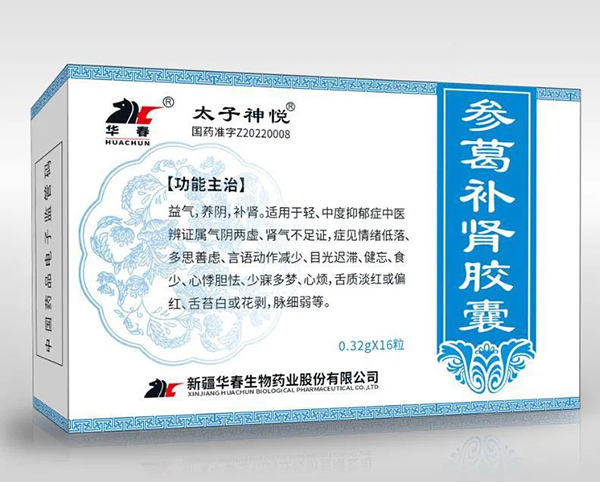 “參葛補腎膠囊”是以中醫“腎陽虧虛”發病機理為依據,取材新疆的太子參、葛根、淫羊藿等天然醫藥資源,發揮中醫復方用藥特點,用于治療輕中度抑郁癥的創新中藥。國家中藥藥理專家葉祖光:“藥品的優點是發揮了中醫復方用藥的特點,既有益氣作用又有補腎的作用同時還有升陽、活血、化瘀的作用,而且藥品經過現代藥理學篩選確定,是既符合中醫理論又經過試驗證明的有效方藥。”