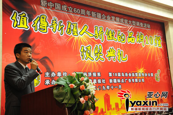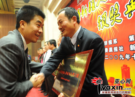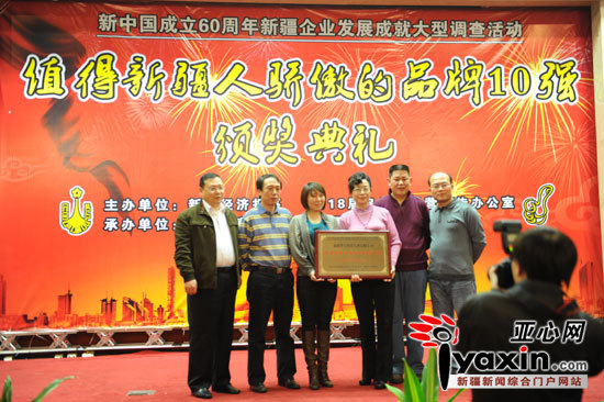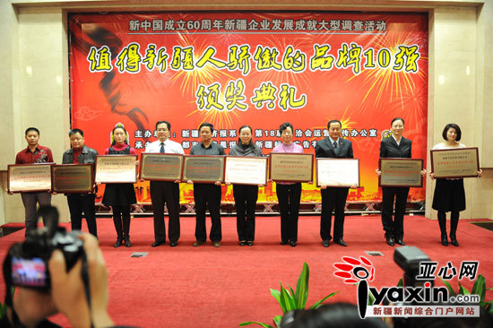 《亞心網》2009.11.09報道:“值得新疆人驕傲的品牌10強”評選活動頒獎