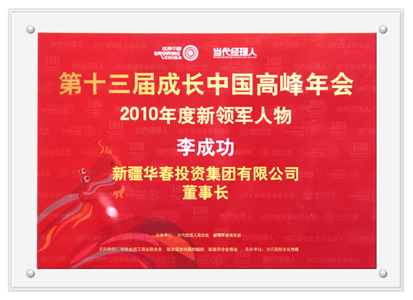 第十三屆成長中國高峰年會李總榮獲“2010年度新領軍人物”稱號